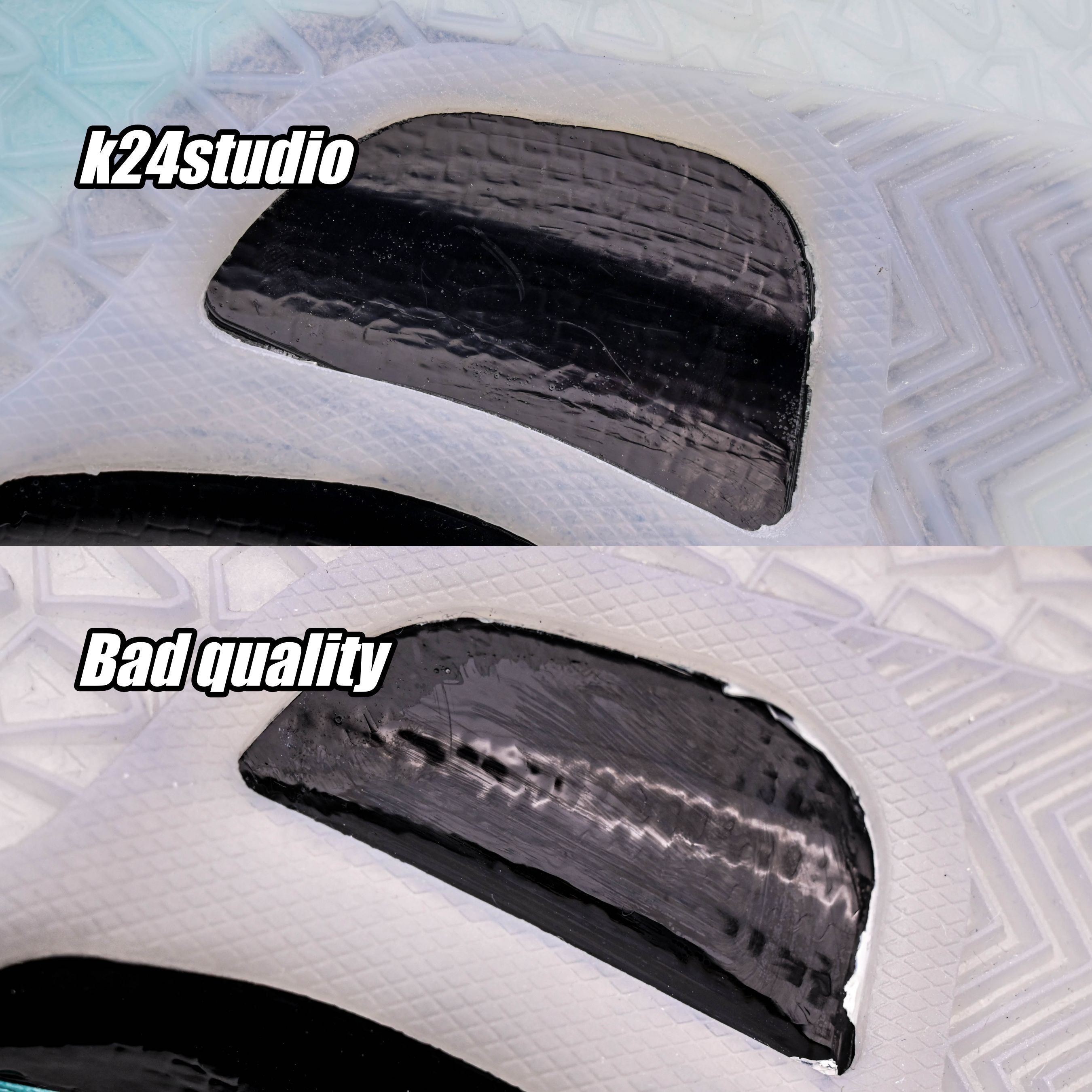 We can see the difference through the shape of the shoes. Shoes of poor quality are darker in color and have a slightly oval heel. Experienced shoe fans only need to take a look to get the answer.
