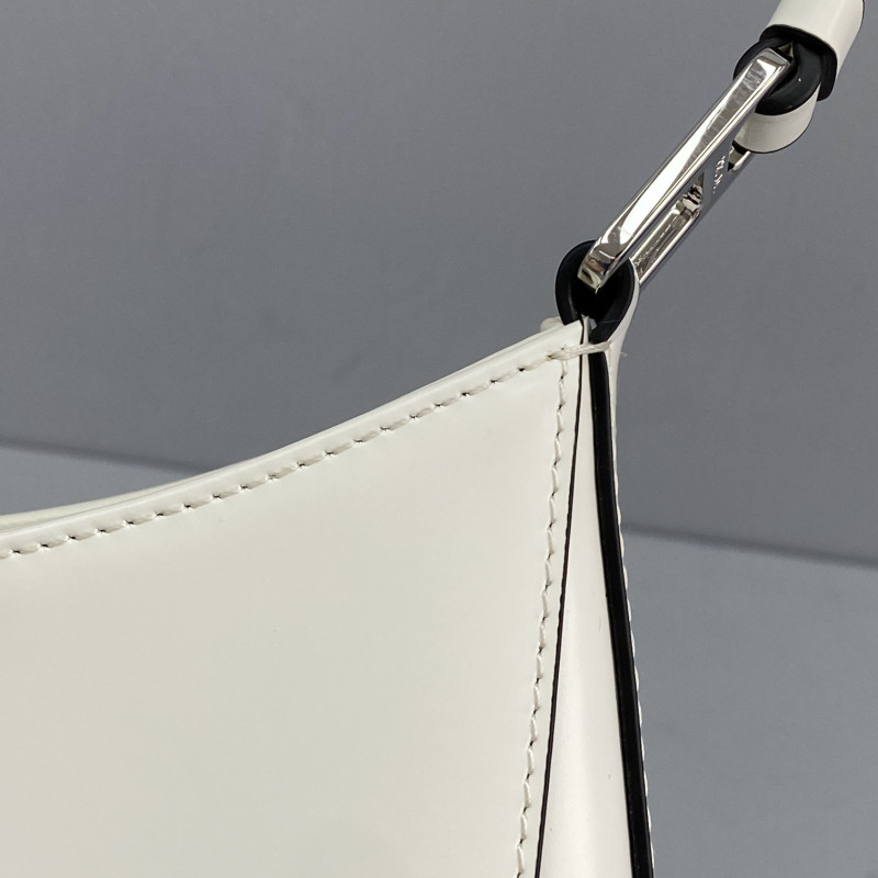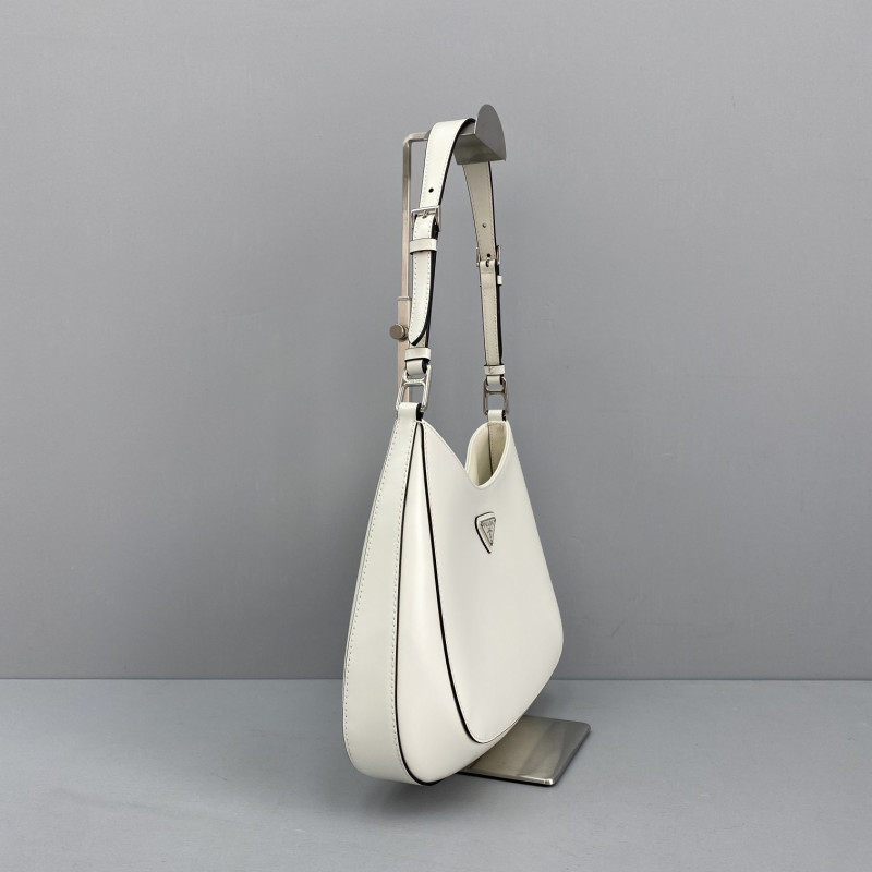 DetailThe special beveled structure of the bottom and sides of this flap bag emphasizes the smooth curved lines and gives it a sophisticated appeal, while the extended handles make it even more functional, allowing it to be worn as a shoulder bag or a tote. Brushed leather, unique to the Prada collection, is a modern, color-changing material perfect for new combinations and contrasts. A triangular enameled logo completes the silhouette.