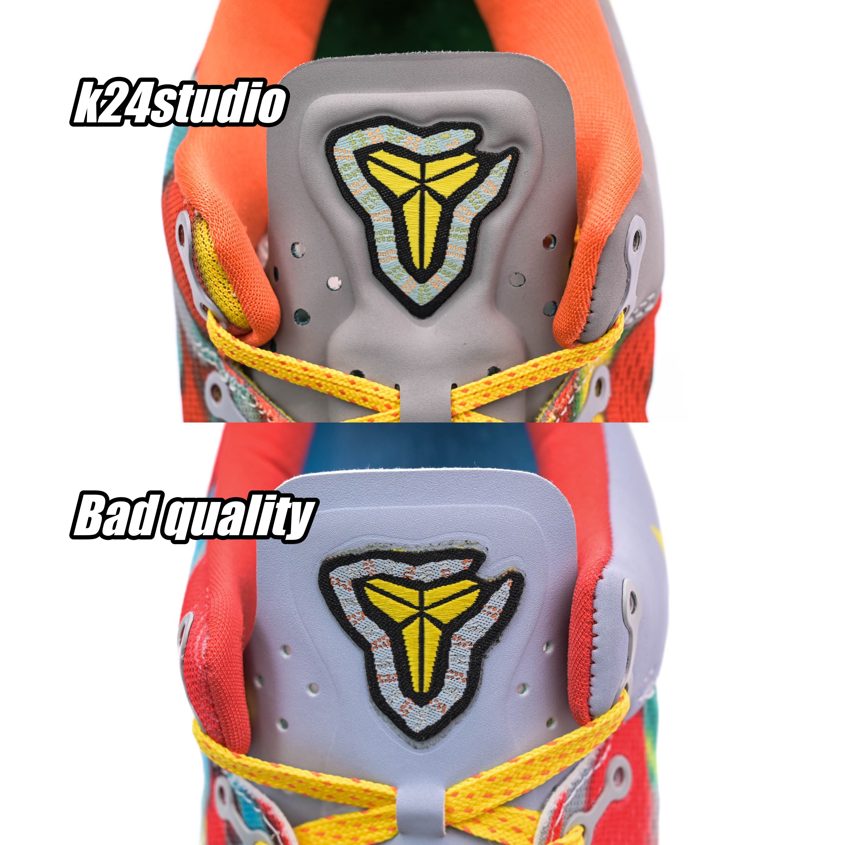 We can see the difference through the shape of the shoes. Shoes of poor quality are darker in color and have a slightly oval heel. Experienced shoe fans only need to take a look to get the answer.