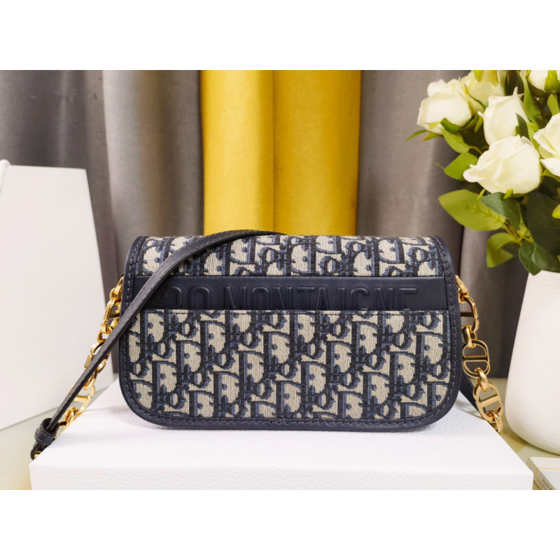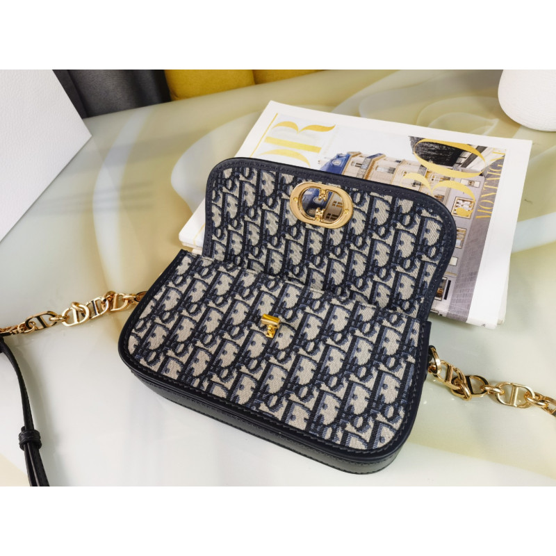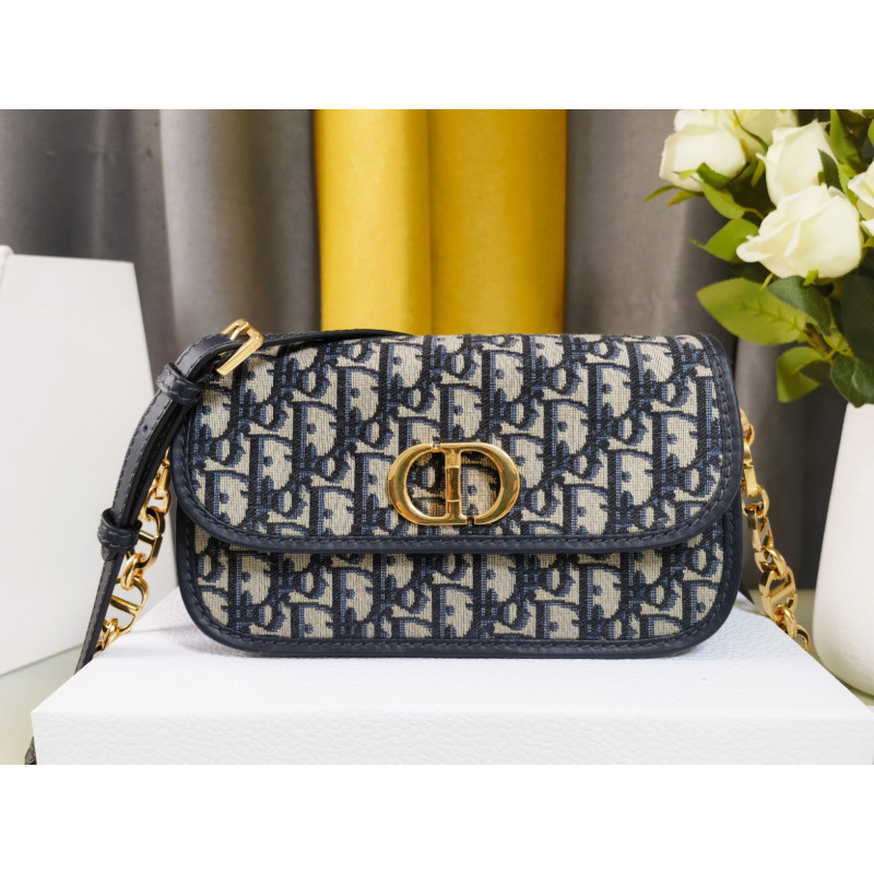 DetailRound flap crafted in calfskin with antiqued gold-plated metal CD clasp, 30 Montaigne logo embossed on the back, and a signature chain with alternating gold-finish metal and tone-on-tone enamel links to match the leather, adjustable. The bag is roomy and refined in shape and can be carried in the hand, over the shoulder or across the body.