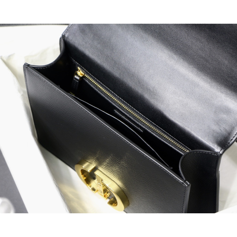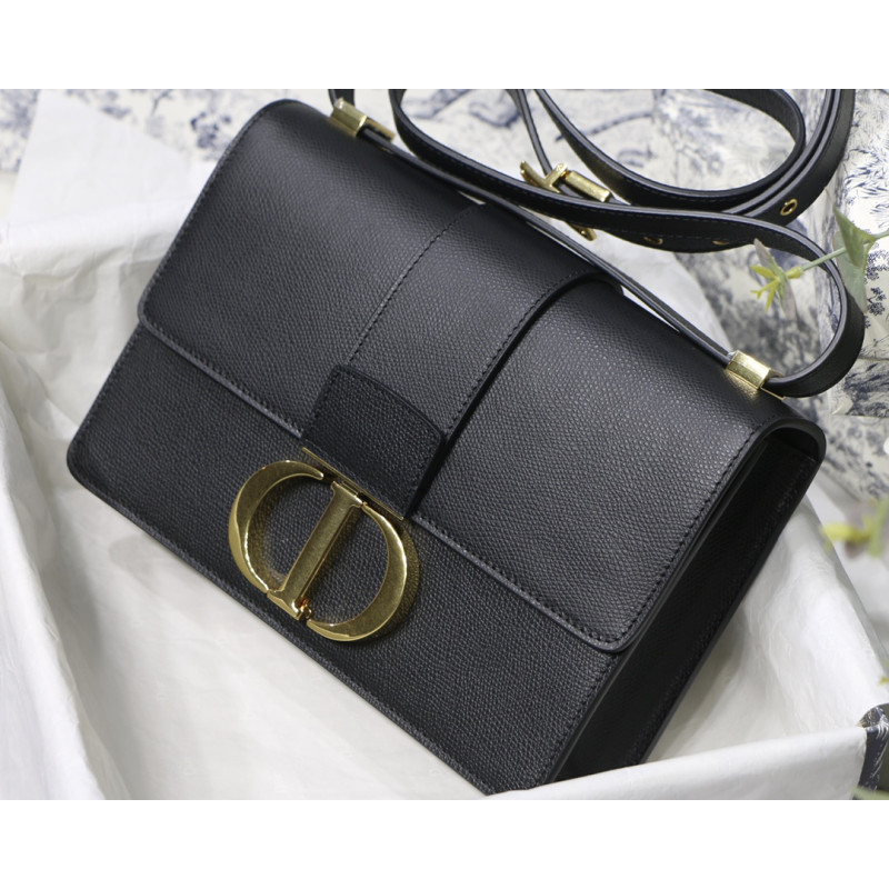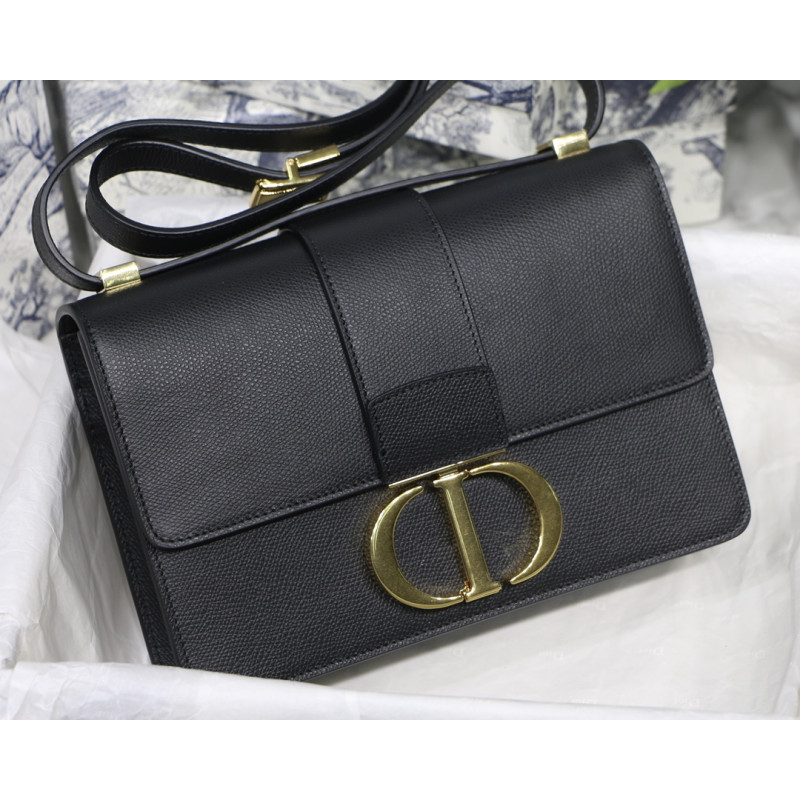 DetailMade of cowhide leather for an elegant and modern look. Flap top with antique gilt metal 'CD' clasp and '30 MONTAIGNE' embossed on the back, adjustable leather shoulder strap to carry it by hand, over the shoulder or across the body.