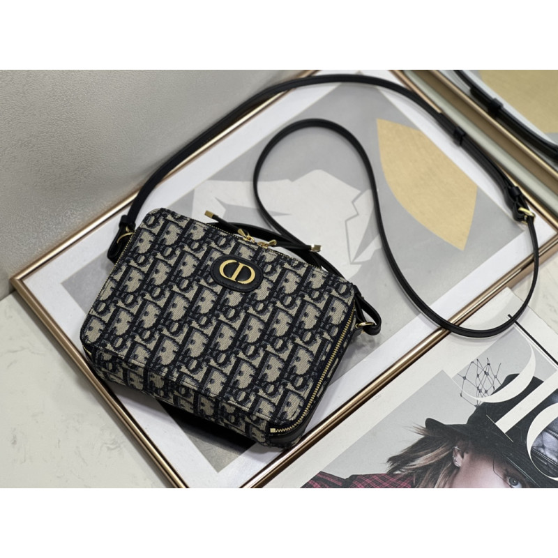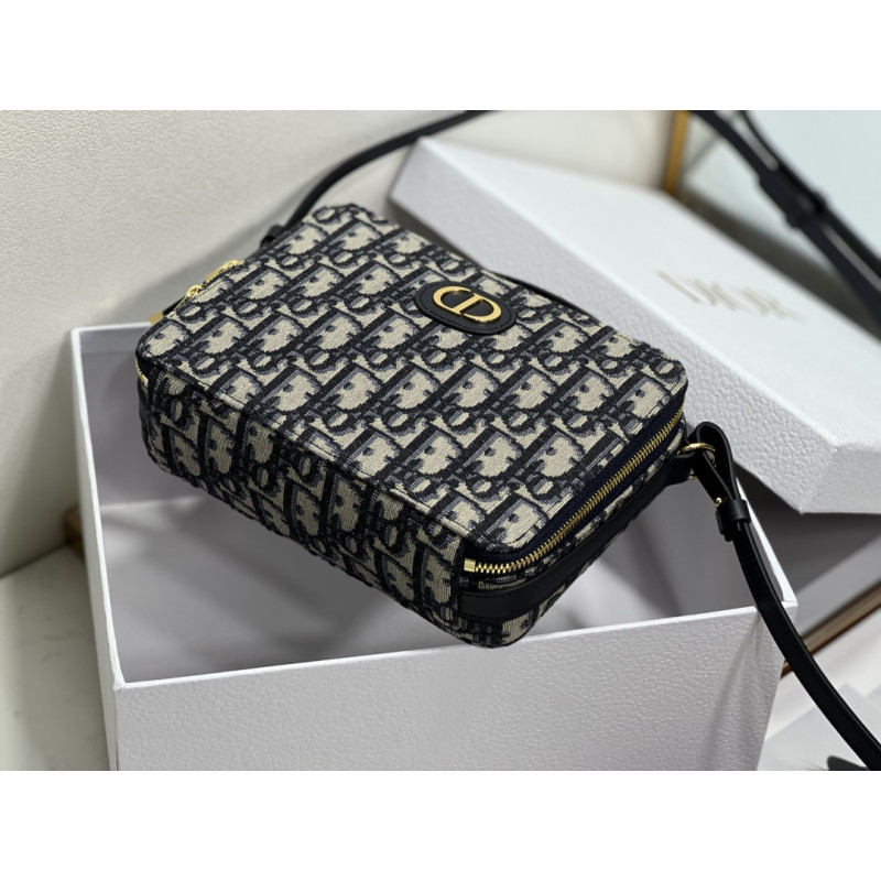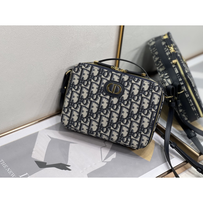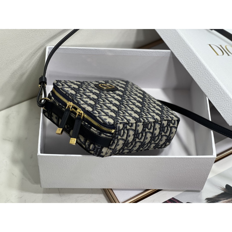 DetailCrafted in blue Dior Oblique jacquard with exclusive Macrocannage quilting effect and spacious compartments (including three card slots) to hold all your daily essentials. The detachable, adjustable chain strap with leather insert is comfortable and adjustable whether worn on the shoulder or cross-body, while the handle makes it easy to carry.