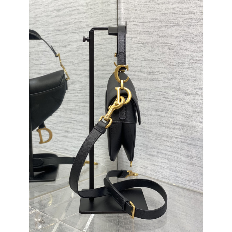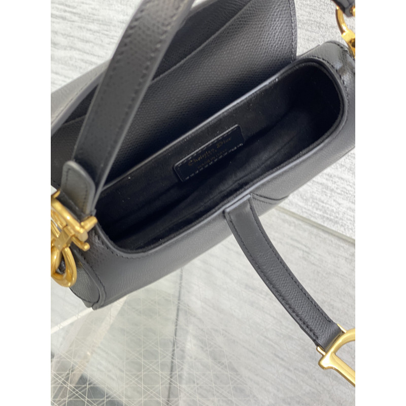 DetailThe black small CD Saddle classic bag has taken the fashion world by storm. This newly released version now comes with a slim shoulder strap that is both detachable and adjustable for added versatility..