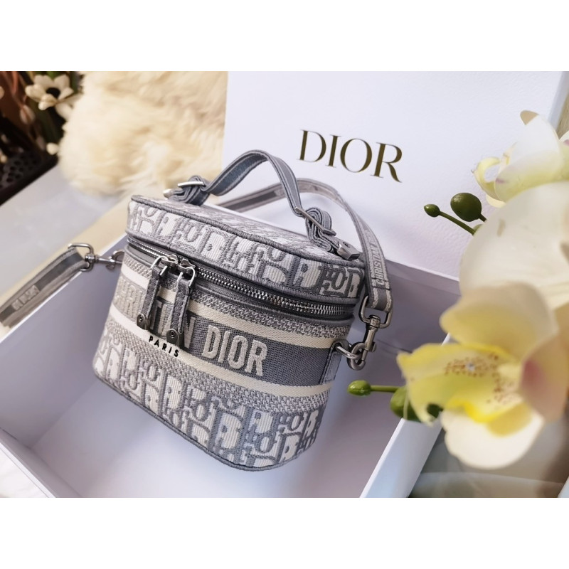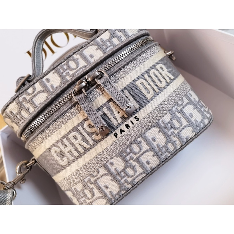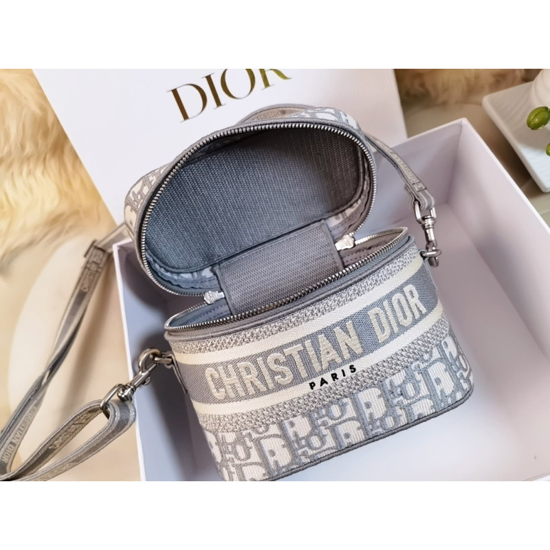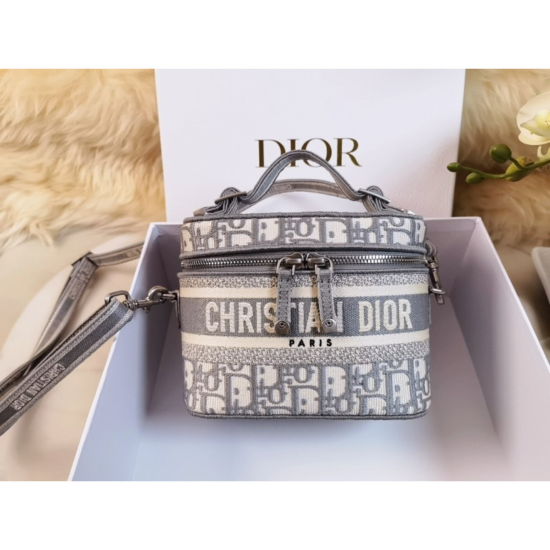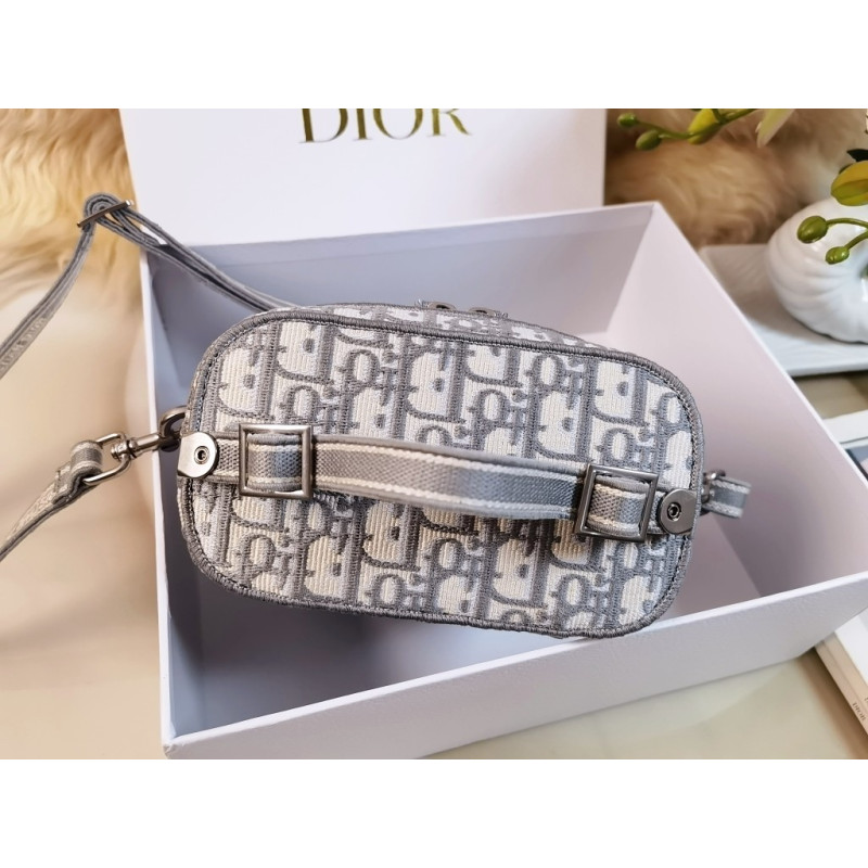 DetailCrafted from Oblique jacquard fabric, it's embossed with the CD signature on the top and bottom. The interior is elegant and spacious with a two-way zip. The sturdy leather top handle and adjustable, detachable shoulder strap make this pouch the ideal everyday companion by hand, over the shoulder or across the body.
