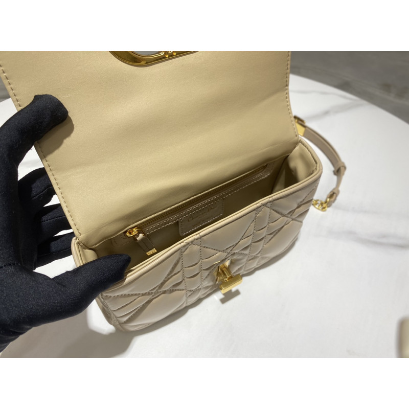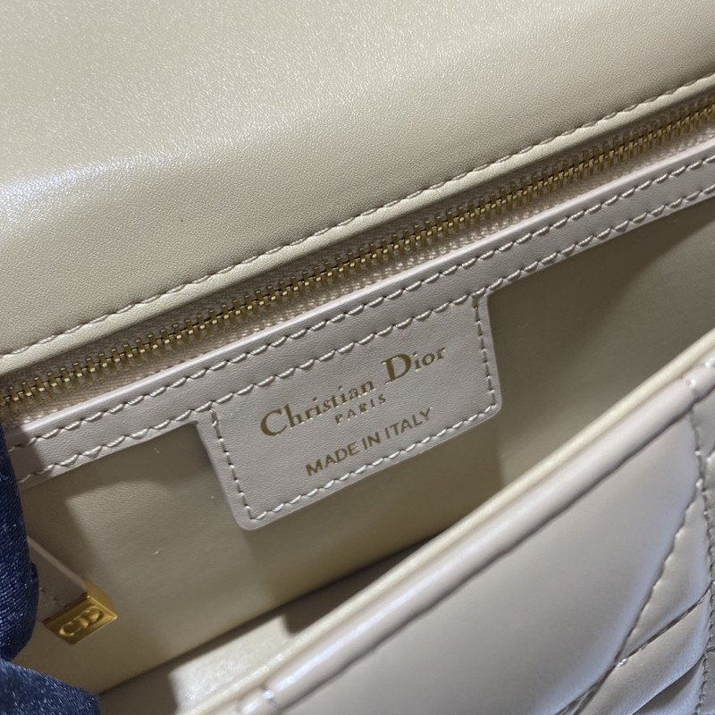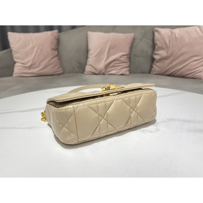 DetailCrafted from calfskin with Cannage stitching. Antique gold-plated metal 'CD' button on the flap, adjustable and detachable chain shoulder strap with 'CD' logo links, can be carried by hand, shoulder or crossbody, and can be matched with different embroidered shoulder straps.