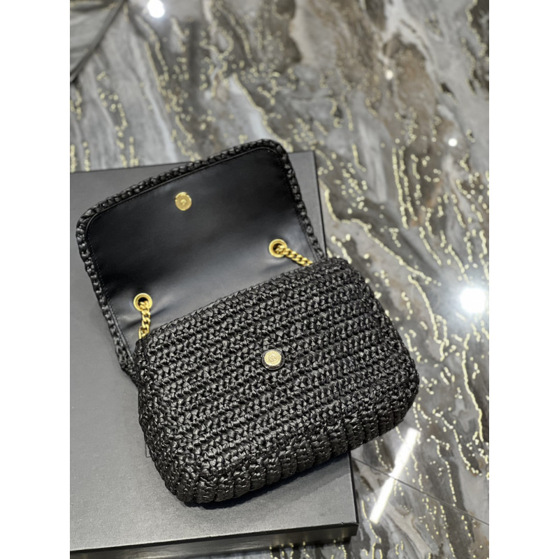 Front flap with magnetic snap closure and signature YSL signature covered in leather. Exterior: 1 rear flat pocket, Interior: 1 main compartment, 1 flat pocket, 1 pocket under the flap, leather lining.